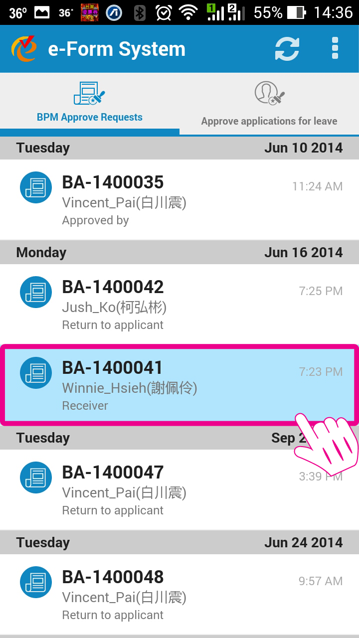 * 目前已開放表單有BA、AA、PO、PR、PL、HI、SB七種BPM表單 。
