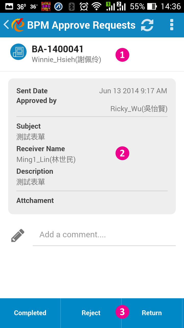 簽核按鈕及comment留言輸入,都統一在每頁下方位置。