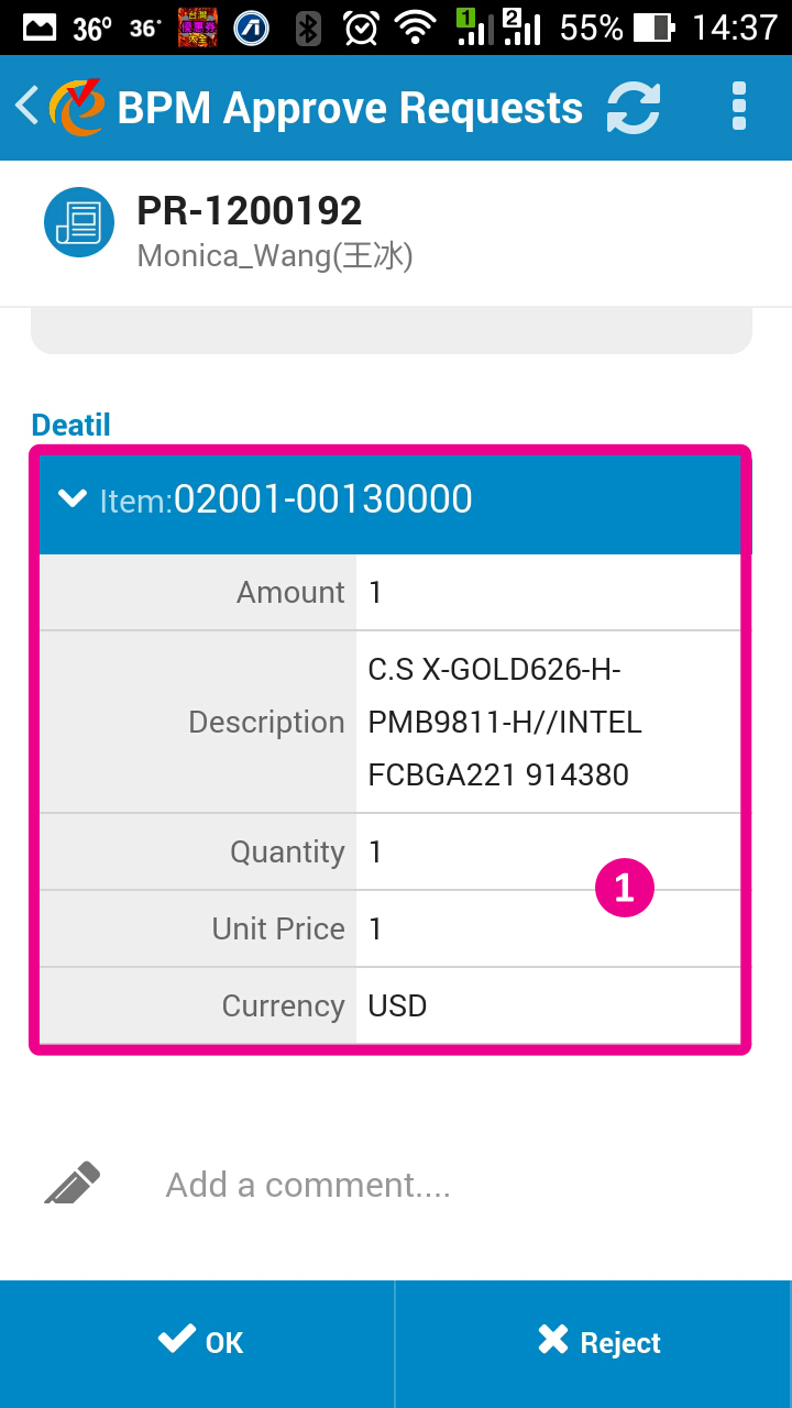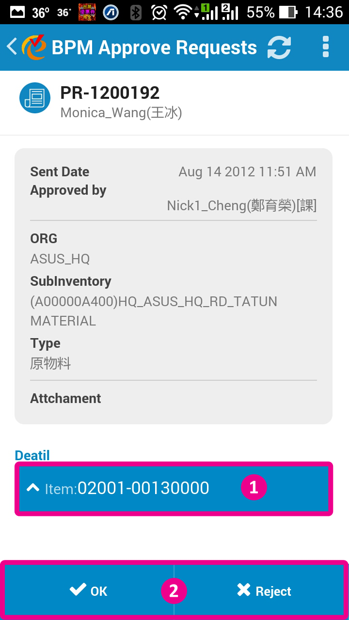 點擊任一單號後,便會進入「表單明細內頁」,內頁將顯示該表單更多的相關詳細內容。
